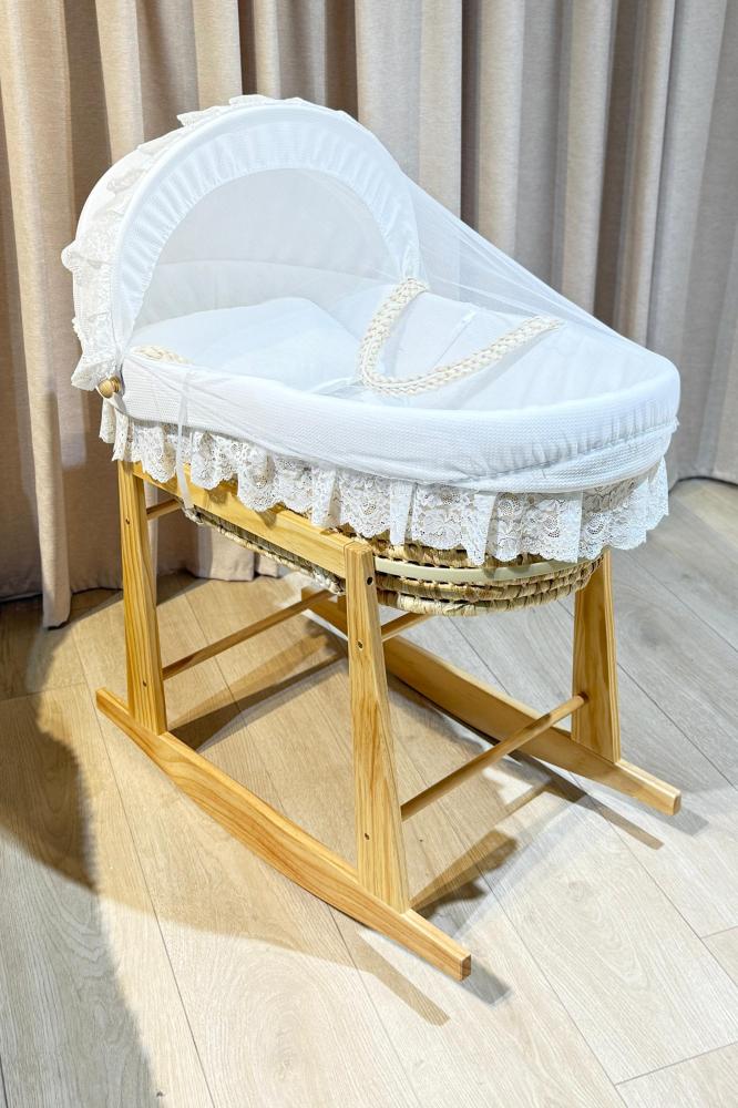 سلة موسى الأنيقة بقاعدة خشبية بلون طبيعي او لون ابيض امنحي طفلك بداية دافئة ومريحة مع سلة موسى الفاخرة.