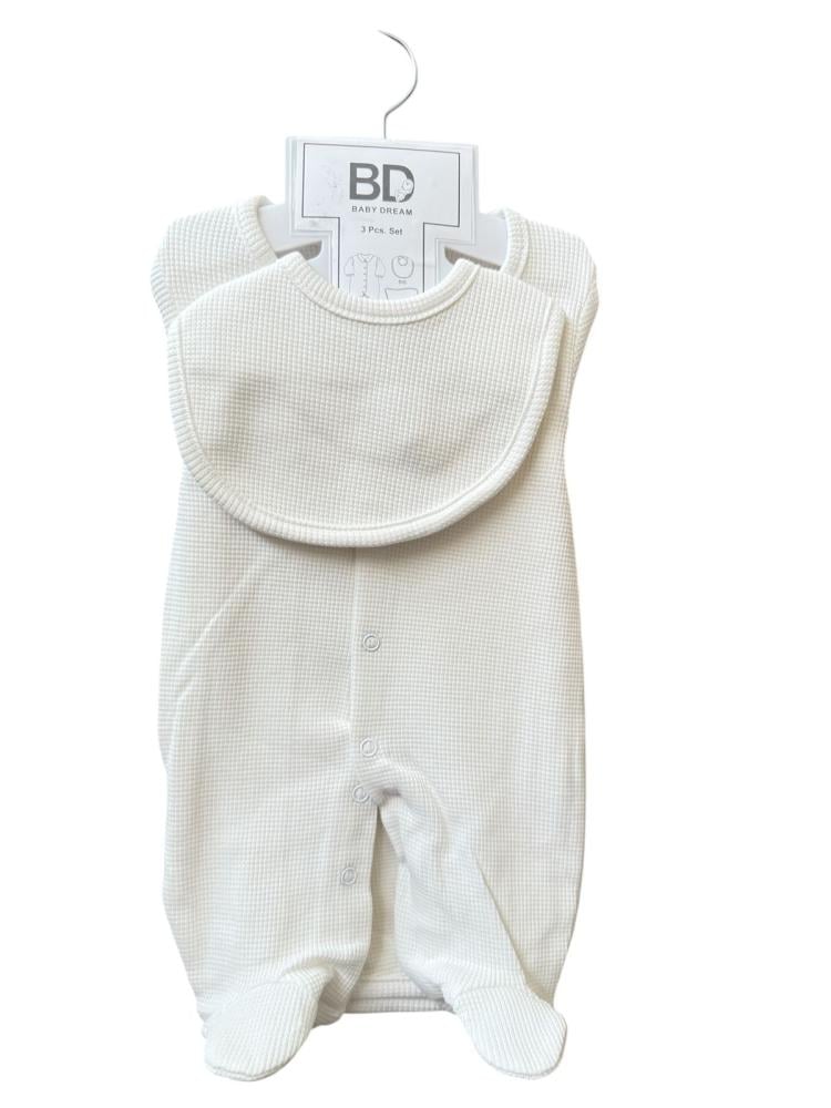 طقم حديثي ولادة منسوج من الخامة القطنية ١٠٠٪ناعمة على بشرة طفلك انيقة بالوان زاهية مكونة من 3 قطع بربتوز خارجيكوفلهمريله